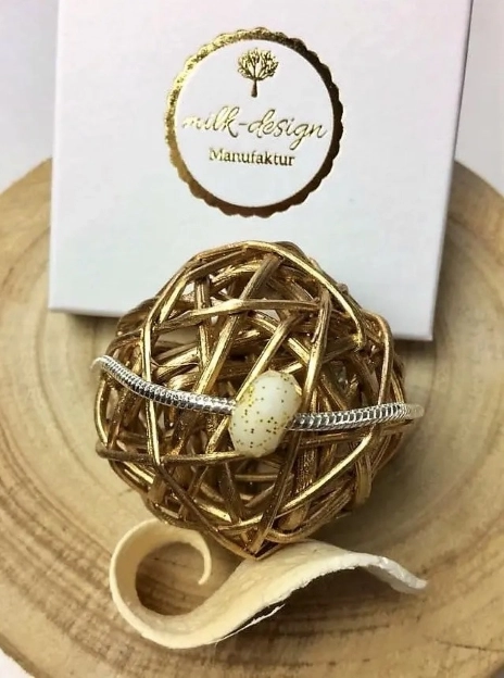 Quand Patrick a entendu parler des bijoux créés à partir de lait maternel et d’autres « matériaux naturels », un collier avec une pierre fabriquée avec du lait maternel, une bague avec une mèche de cheveu ou une empreinte digitale du bébé, un pendentif avec une empreinte de patte de chien, une idée a commencé à prendre forme dans son esprit. À l’époque, les bijoux en matériaux naturels gagnaient en popularité aux États-Unis, mais Patrick et Josephin n’avaient jamais rien vu de tel en Allemagne, ou même en Europe. C’est ainsi que milk-design, leur entreprise de conception de bijoux et leur deuxième bébé, est né.