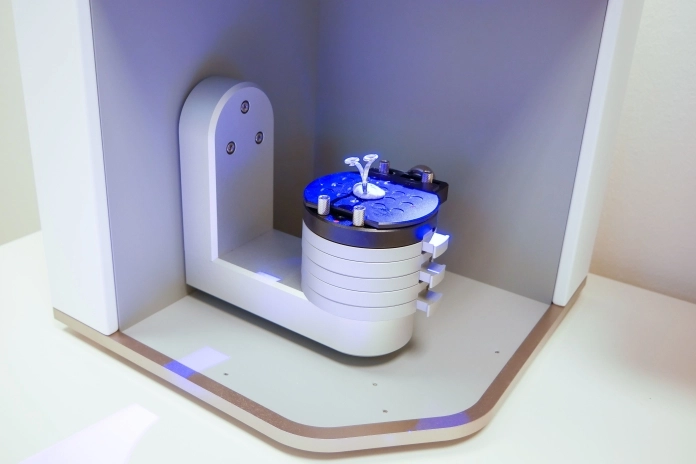 Pour obtenir les meilleurs résultats possible avec le scanner, Patrick et son équipe utilisent une bombe aérosol spéciale qui facilite la numérisation des surfaces brillantes. Ensuite, ils nettoient le bijou scanné dans un bain à ultrasons qui polit les morceaux de métal et de verre dans l’atelier. Le modèle numérisé est traité dans le logiciel Artec Studio. Puis, le fichier STL final est exporté dans le logiciel 3Design pour davantage de modifications.
