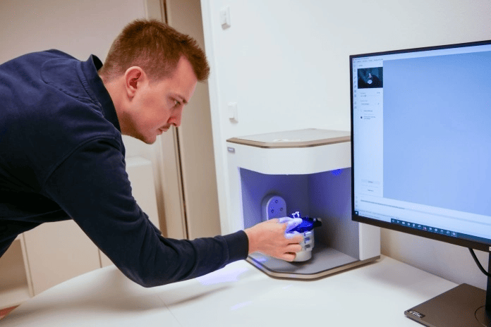 Persuadé qu’il existait un moyen de rendre le processus plus rapide et plus efficace, Patrick a commencé à chercher un scanner 3D qui accélérerait la production et permettrait de créer des montures en interne.