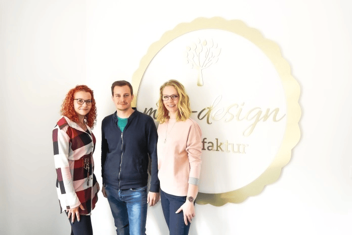 L’équipe de milk-design Manufaktur. De gauche à droite : la créatrice de bijoux Josi Borch et les fondateurs Patrick Hübner & Josephin Hammer.
